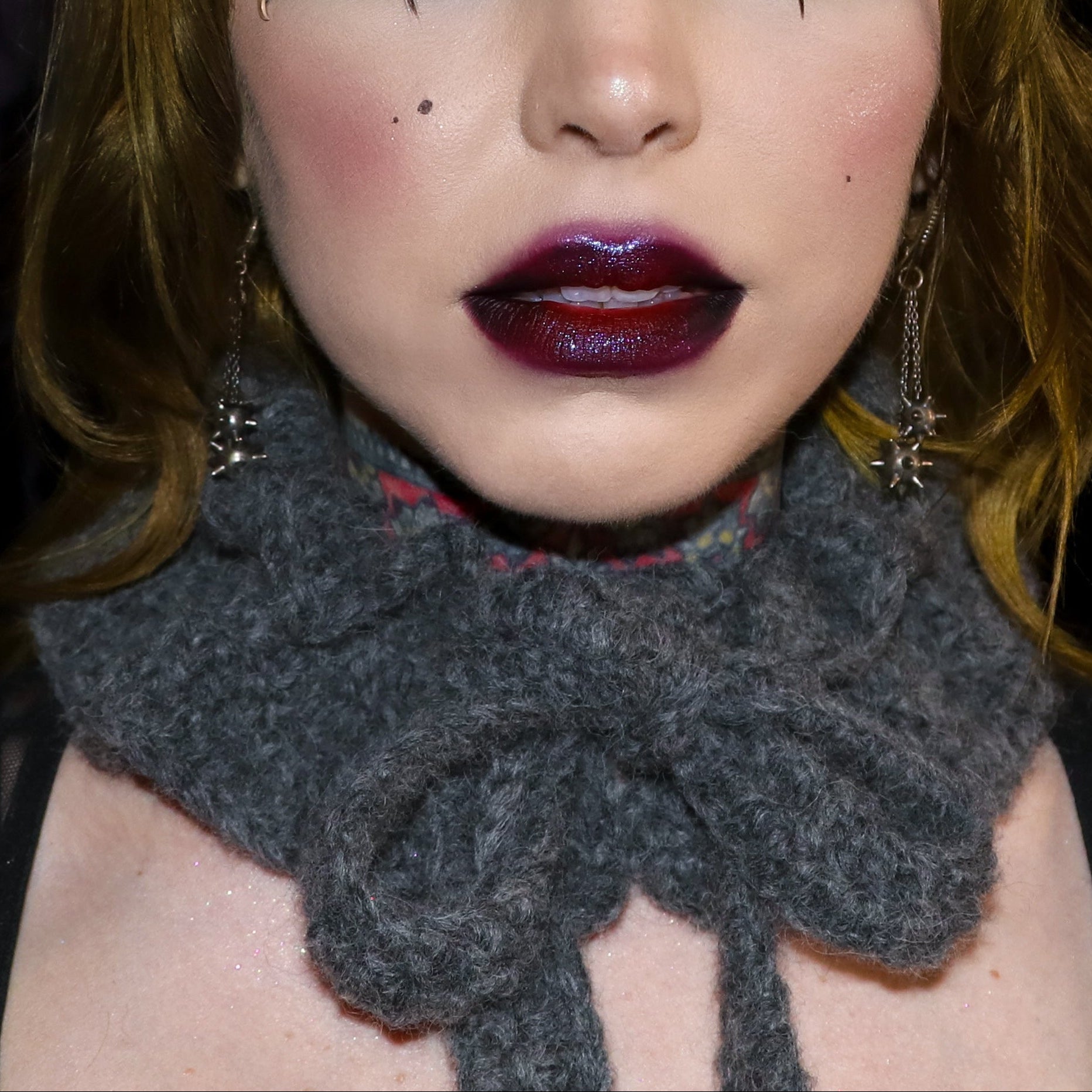 This piece wraps around your neck with a long crocheted ribbon closure and a ruffle along the top and bottom. This ruffle was hand crocheted with love.